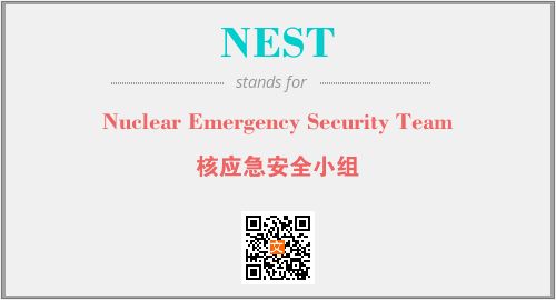 上述内容是“Nuclear Emergency Security Team”作为“NEST”的缩写,解释为“核应急安全小组”时的信息,以及英文缩略词NEST所代表的英文单词,其对应的中文拼音、详细解释以及在英文中的流行度和相关分类、应用领域及应用示例等。