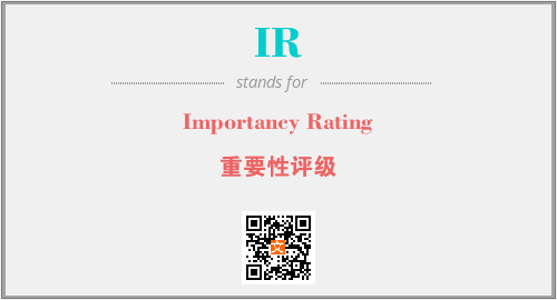 上述内容是“Importancy Rating”作为“IR”的缩写,解释为“重要性评级”时的信息,以及英文缩略词IR所代表的英文单词,其对应的中文拼音、详细解释以及在英文中的流行度和相关分类、应用领域及应用示例等。