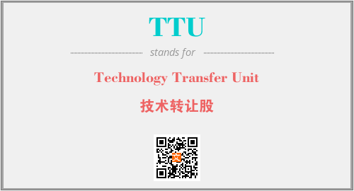 上述内容是“Technology Transfer Unit”作为“TTU”的缩写,解释为“技术转让股”时的信息,以及英文缩略词TTU所代表的英文单词,其对应的中文拼音、详细解释以及在英文中的流行度和相关分类、应用领域及应用示例等。