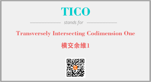 上述内容是“Transversely Intersecting Codimension One”作为“TICO”的缩写,解释为“横交余维1”时的信息,以及英文缩略词TICO所代表的英文单词,其对应的中文拼音、详细解释以及在英文中的流行度和相关分类、应用领域及应用示例等。