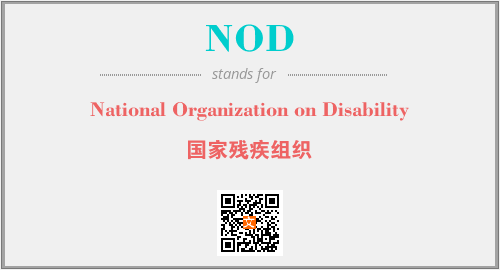 上述内容是“National Organization on Disability”作为“NOD”的缩写,解释为“国家残疾组织”时的信息,以及英文缩略词NOD所代表的英文单词,其对应的中文拼音、详细解释以及在英文中的流行度和相关分类、应用领域及应用示例等。