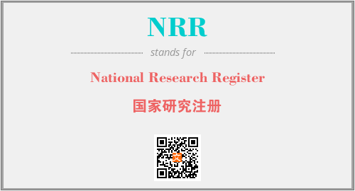 上述内容是“National Research Register”作为“NRR”的缩写,解释为“国家研究注册”时的信息,以及英文缩略词NRR所代表的英文单词,其对应的中文拼音、详细解释以及在英文中的流行度和相关分类、应用领域及应用示例等。
