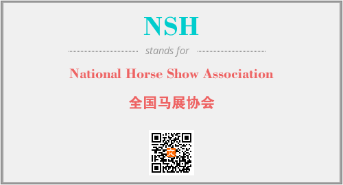 英文缩略词“NSH”经常作为“National Horse Show Association”的英文缩写来使用,中文表示:“全国马展协会”。本文将详细介绍英文缩写词NSH所代表英文单词,其对应的中文拼音、详细解释以及在英语中的流行度。此外,还有关于缩略词NSH的分类、应用领域及相关应用示例等。