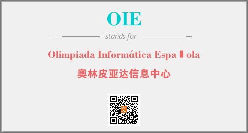 上述内容是“Olimpiada Informática Española”作为“OIE”的缩写,解释为“奥林皮亚达信息中心”时的信息,以及英文缩略词OIE所代表的英文单词,其对应的中文拼音、详细解释以及在英文中的流行度和相关分类、应用领域及应用示例等。