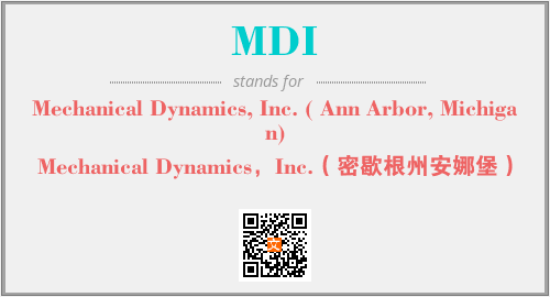 上述内容是“Mechanical Dynamics, Inc. ( Ann Arbor, Michigan)”作为“MDI”的缩写,解释为“Mechanical Dynamics,Inc.(密歇根州安娜堡)”时的信息,以及英文缩略词MDI所代表的英文单词,其对应的中文拼音、详细解释以及在英文中的流行度和相关分类、应用领域及应用示例等。