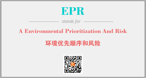 上述内容是“A Environmental Prioritization And Risk”作为“EPR”的缩写,解释为“环境优先顺序和风险”时的信息,以及英文缩略词EPR所代表的英文单词,其对应的中文拼音、详细解释以及在英文中的流行度和相关分类、应用领域及应用示例等。