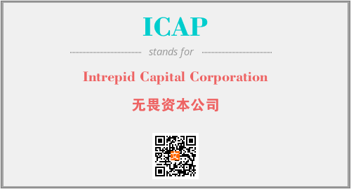 英文缩略词“ICAP”经常作为“Intrepid Capital Corporation”的英文缩写来使用,中文表示:“无畏资本公司”。本文将详细介绍英文缩写词ICAP所代表英文单词,其对应的中文拼音、详细解释以及在英语中的流行度。此外,还有关于缩略词ICAP的分类、应用领域及相关应用示例等。