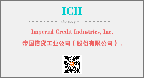 上述内容是“Imperial Credit Industries, Inc.”作为“ICII”的缩写,解释为“帝国信贷工业公司(股份有限公司)。”时的信息,以及英文缩略词ICII所代表的英文单词,其对应的中文拼音、详细解释以及在英文中的流行度和相关分类、应用领域及应用示例等。