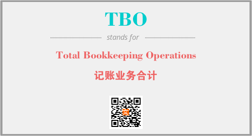 英文缩略词“TBO”经常作为“Total Bookkeeping Operations”的英文缩写来使用,中文表示:“记账业务合计”。本文将详细介绍英文缩写词TBO所代表英文单词,其对应的中文拼音、详细解释以及在英语中的流行度。此外,还有关于缩略词TBO的分类、应用领域及相关应用示例等。