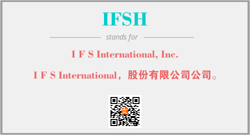 上述内容是“I F S International, Inc.”作为“IFSH”的缩写,解释为“I F S International,股份有限公司公司。”时的信息,以及英文缩略词IFSH所代表的英文单词,其对应的中文拼音、详细解释以及在英文中的流行度和相关分类、应用领域及应用示例等。
