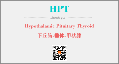 上述内容是“Hypothalamic Pituitary Thyroid”作为“HPT”的缩写,解释为“下丘脑-垂体-甲状腺”时的信息,以及英文缩略词HPT所代表的英文单词,其对应的中文拼音、详细解释以及在英文中的流行度和相关分类、应用领域及应用示例等。