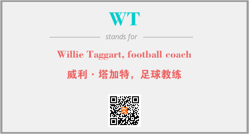 上述内容是“Willie Taggart, football coach”作为“WT”的缩写,解释为“威利·塔加特,足球教练”时的信息,以及英文缩略词WT所代表的英文单词,其对应的中文拼音、详细解释以及在英文中的流行度和相关分类、应用领域及应用示例等。