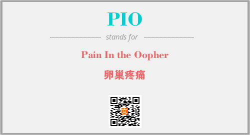 英文缩略词“PIO”经常作为“Pain In the Oopher”的英文缩写来使用,中文表示:“卵巢疼痛”。本文将详细介绍英文缩写词PIO所代表英文单词,其对应的中文拼音、详细解释以及在英语中的流行度。此外,还有关于缩略词PIO的分类、应用领域及相关应用示例等。