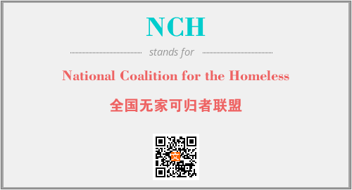 上述内容是“National Coalition for the Homeless”作为“NCH”的缩写,解释为“全国无家可归者联盟”时的信息,以及英文缩略词NCH所代表的英文单词,其对应的中文拼音、详细解释以及在英文中的流行度和相关分类、应用领域及应用示例等。