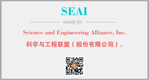 上述内容是“Science and Engineering Alliance, Inc.”作为“SEAI”的缩写,解释为“科学与工程联盟(股份有限公司)。”时的信息,以及英文缩略词SEAI所代表的英文单词,其对应的中文拼音、详细解释以及在英文中的流行度和相关分类、应用领域及应用示例等。