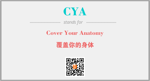 英文缩略词“CYA”经常作为“Cover Your Anatomy”的英文缩写来使用,中文表示:“覆盖你的身体”。本文将详细介绍英文缩写词CYA所代表英文单词,其对应的中文拼音、详细解释以及在英语中的流行度。此外,还有关于缩略词CYA的分类、应用领域及相关应用示例等。