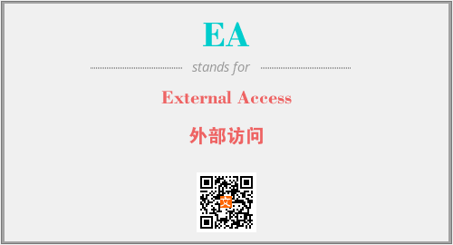 英文缩略词“EA”经常作为“External Access”的英文缩写来使用,中文表示:“外部访问”。本文将详细介绍英文缩写词EA所代表英文单词,其对应的中文拼音、详细解释以及在英语中的流行度。此外,还有关于缩略词EA的分类、应用领域及相关应用示例等。