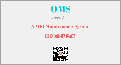英文缩略词“OMS”经常作为“A Old Maintenance System”的英文缩写来使用,中文表示:“旧的维护系统”。本文将详细介绍英文缩写词OMS所代表英文单词,其对应的中文拼音、详细解释以及在英语中的流行度。此外,还有关于缩略词OMS的分类、应用领域及相关应用示例等。