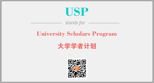 上述内容是“University Scholars Program”作为“USP”的缩写,解释为“大学学者计划”时的信息,以及英文缩略词USP所代表的英文单词,其对应的中文拼音、详细解释以及在英文中的流行度和相关分类、应用领域及应用示例等。