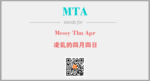 以上为Messy Thu Apr英文缩略词MTA的中文解释,以及该英文缩写在英语的流行度、分类和应用领域方面的信息。