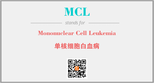 英文缩略词“MCL”经常作为“Mononuclear Cell Leukemia”的英文缩写来使用,中文表示:“单核细胞白血病”。本文将详细介绍英文缩写词MCL所代表英文单词,其对应的中文拼音、详细解释以及在英语中的流行度。此外,还有关于缩略词MCL的分类、应用领域及相关应用示例等。