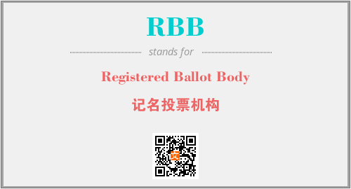 上述内容是“Registered Ballot Body”作为“RBB”的缩写,解释为“记名投票机构”时的信息,以及英文缩略词RBB所代表的英文单词,其对应的中文拼音、详细解释以及在英文中的流行度和相关分类、应用领域及应用示例等。