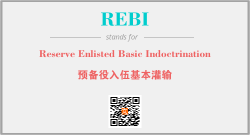 英文缩略词“REBI”经常作为“Reserve Enlisted Basic Indoctrination”的英文缩写来使用,中文表示:“预备役入伍基本灌输”。本文将详细介绍英文缩写词REBI所代表英文单词,其对应的中文拼音、详细解释以及在英语中的流行度。此外,还有关于缩略词REBI的分类、应用领域及相关应用示例等。