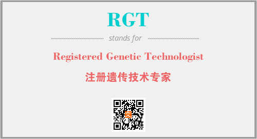 英文缩略词“RGT”经常作为“Registered Genetic Technologist”的英文缩写来使用,中文表示:“注册遗传技术专家”。本文将详细介绍英文缩写词RGT所代表英文单词,其对应的中文拼音、详细解释以及在英语中的流行度。此外,还有关于缩略词RGT的分类、应用领域及相关应用示例等。