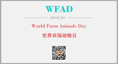 上述内容是“World Farm Animals Day”作为“WFAD”的缩写,解释为“世界农场动物日”时的信息,以及英文缩略词WFAD所代表的英文单词,其对应的中文拼音、详细解释以及在英文中的流行度和相关分类、应用领域及应用示例等。