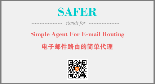 上述内容是“Simple Agent For E-mail Routing”作为“SAFER”的缩写,解释为“电子邮件路由的简单代理”时的信息,以及英文缩略词SAFER所代表的英文单词,其对应的中文拼音、详细解释以及在英文中的流行度和相关分类、应用领域及应用示例等。