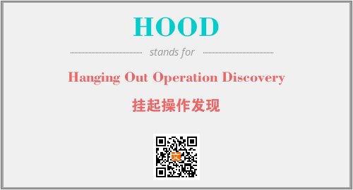 上述内容是“Hanging Out Operation Discovery”作为“HOOD”的缩写,解释为“挂起操作发现”时的信息,以及英文缩略词HOOD所代表的英文单词,其对应的中文拼音、详细解释以及在英文中的流行度和相关分类、应用领域及应用示例等。