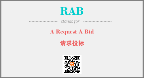 英文缩略词“RAB”经常作为“A Request A Bid”的英文缩写来使用,中文表示:“请求投标”。本文将详细介绍英文缩写词RAB所代表英文单词,其对应的中文拼音、详细解释以及在英语中的流行度。此外,还有关于缩略词RAB的分类、应用领域及相关应用示例等。