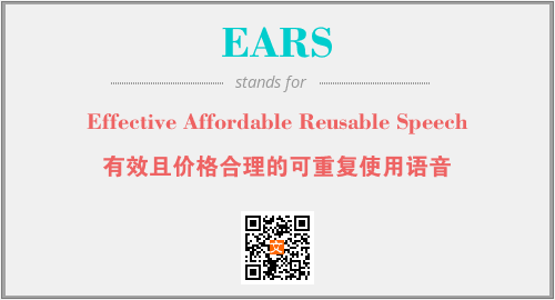 英文缩略词“EARS”经常作为“Effective Affordable Reusable Speech”的英文缩写来使用,中文表示:“有效且价格合理的可重复使用语音”。本文将详细介绍英文缩写词EARS所代表英文单词,其对应的中文拼音、详细解释以及在英语中的流行度。此外,还有关于缩略词EARS的分类、应用领域及相关应用示例等。
