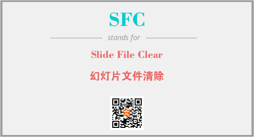 上述内容是“Slide File Clear”作为“SFC”的缩写,解释为“幻灯片文件清除”时的信息,以及英文缩略词SFC所代表的英文单词,其对应的中文拼音、详细解释以及在英文中的流行度和相关分类、应用领域及应用示例等。