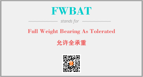 上述内容是“Full Weight Bearing As Tolerated”作为“FWBAT”的缩写,解释为“允许全承重”时的信息,以及英文缩略词FWBAT所代表的英文单词,其对应的中文拼音、详细解释以及在英文中的流行度和相关分类、应用领域及应用示例等。