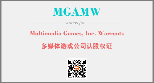 上述内容是“Multimedia Games, Inc. Warrants”作为“MGAMW”的缩写,解释为“多媒体游戏公司认股权证”时的信息,以及英文缩略词MGAMW所代表的英文单词,其对应的中文拼音、详细解释以及在英文中的流行度和相关分类、应用领域及应用示例等。
