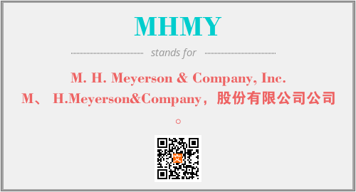 上述内容是“M. H. Meyerson & Company, Inc.”作为“MHMY”的缩写,解释为“M、 H.Meyerson&Company,股份有限公司公司。”时的信息,以及英文缩略词MHMY所代表的英文单词,其对应的中文拼音、详细解释以及在英文中的流行度和相关分类、应用领域及应用示例等。
