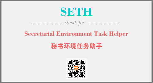 上述内容是“Secretarial Environment Task Helper”作为“SETH”的缩写,解释为“秘书环境任务助手”时的信息,以及英文缩略词SETH所代表的英文单词,其对应的中文拼音、详细解释以及在英文中的流行度和相关分类、应用领域及应用示例等。