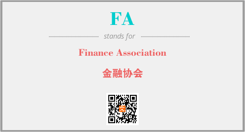 英文缩略词“FA”经常作为“Finance Association”的英文缩写来使用,中文表示:“金融协会”。本文将详细介绍英文缩写词FA所代表英文单词,其对应的中文拼音、详细解释以及在英语中的流行度。此外,还有关于缩略词FA的分类、应用领域及相关应用示例等。