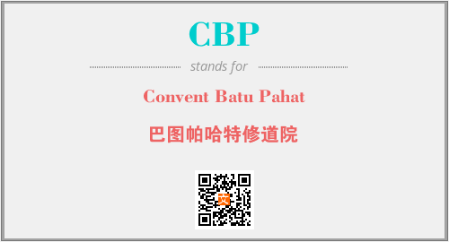 英文缩略词“CBP”经常作为“Convent Batu Pahat”的英文缩写来使用,中文表示:“巴图帕哈特修道院”。本文将详细介绍英文缩写词CBP所代表英文单词,其对应的中文拼音、详细解释以及在英语中的流行度。此外,还有关于缩略词CBP的分类、应用领域及相关应用示例等。