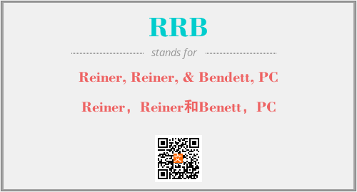 上述内容是“Reiner, Reiner, & Bendett, PC”作为“RRB”的缩写,解释为“Reiner,Reiner和Benett,PC”时的信息,以及英文缩略词RRB所代表的英文单词,其对应的中文拼音、详细解释以及在英文中的流行度和相关分类、应用领域及应用示例等。