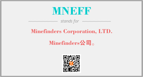 上述内容是“Minefinders Corporation, LTD.”作为“MNEFF”的缩写,解释为“Minefinders公司。”时的信息,以及英文缩略词MNEFF所代表的英文单词,其对应的中文拼音、详细解释以及在英文中的流行度和相关分类、应用领域及应用示例等。