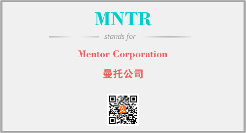 上述内容是“Mentor Corporation”作为“MNTR”的缩写,解释为“曼托公司”时的信息,以及英文缩略词MNTR所代表的英文单词,其对应的中文拼音、详细解释以及在英文中的流行度和相关分类、应用领域及应用示例等。