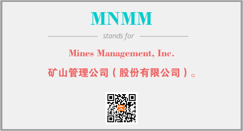 上述内容是“Mines Management, Inc.”作为“MNMM”的缩写,解释为“矿山管理公司(股份有限公司)。”时的信息,以及英文缩略词MNMM所代表的英文单词,其对应的中文拼音、详细解释以及在英文中的流行度和相关分类、应用领域及应用示例等。