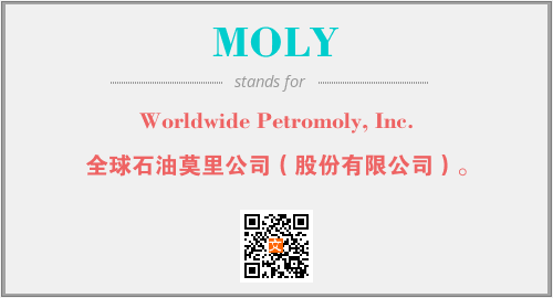 上述内容是“Worldwide Petromoly, Inc.”作为“MOLY”的缩写,解释为“全球石油莫里公司(股份有限公司)。”时的信息,以及英文缩略词MOLY所代表的英文单词,其对应的中文拼音、详细解释以及在英文中的流行度和相关分类、应用领域及应用示例等。