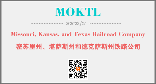 上述内容是“Missouri, Kansas, and Texas Railroad Company”作为“MOKTL”的缩写,解释为“密苏里州、堪萨斯州和德克萨斯州铁路公司”时的信息,以及英文缩略词MOKTL所代表的英文单词,其对应的中文拼音、详细解释以及在英文中的流行度和相关分类、应用领域及应用示例等。