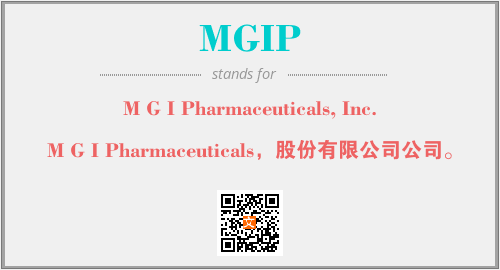 上述内容是“M G I Pharmaceuticals, Inc.”作为“MGIP”的缩写,解释为“M G I Pharmaceuticals,股份有限公司公司。”时的信息,以及英文缩略词MGIP所代表的英文单词,其对应的中文拼音、详细解释以及在英文中的流行度和相关分类、应用领域及应用示例等。
