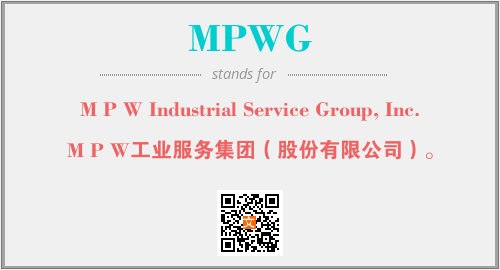 上述内容是“M P W Industrial Service Group, Inc.”作为“MPWG”的缩写,解释为“M P W工业服务集团(股份有限公司)。”时的信息,以及英文缩略词MPWG所代表的英文单词,其对应的中文拼音、详细解释以及在英文中的流行度和相关分类、应用领域及应用示例等。