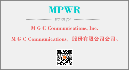 上述内容是“M G C Communications, Inc.”作为“MPWR”的缩写,解释为“M G C Communications,股份有限公司公司。”时的信息,以及英文缩略词MPWR所代表的英文单词,其对应的中文拼音、详细解释以及在英文中的流行度和相关分类、应用领域及应用示例等。