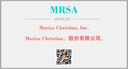 上述内容是“Marisa Christina, Inc.”作为“MRSA”的缩写,解释为“Marisa Christina,股份有限公司。”时的信息,以及英文缩略词MRSA所代表的英文单词,其对应的中文拼音、详细解释以及在英文中的流行度和相关分类、应用领域及应用示例等。